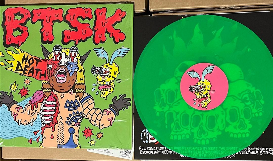 The Beat The Smart Kids album, HOT DEATH, as well as being available on all streaming platforms, now lives on 45 rpm slime green 12″ vinyl. Head over to their bandcamp and grab one for yourself.